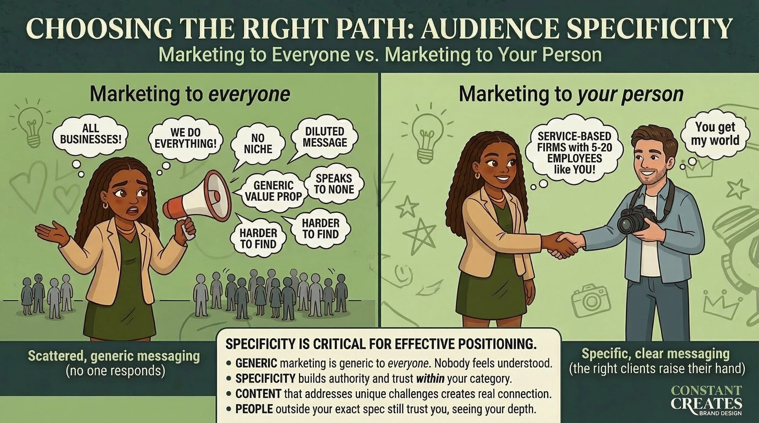 When a potential client asks who you work with, what do you say? If your answer is "small business owners," "people who need marketing help," or "anyone who wants to grow," you're missing the opportunity to build a brand that actually lands.